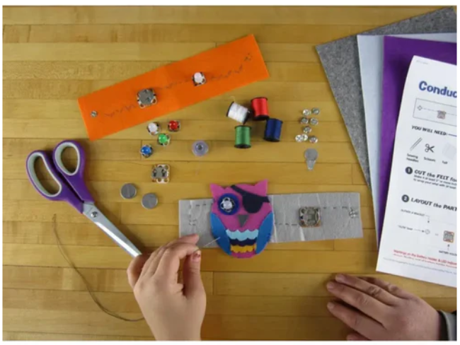 • Designed for individual or small group use, the Sewing Circuits Standard Kit contains enough materials for at least two projects. This Sewing Circuits Kit makes it very easy to create wearable electronics and flexible circuits. Using conductive thread and our special Crazy Circuits parts, you can easily sew circuits onto any fabric.