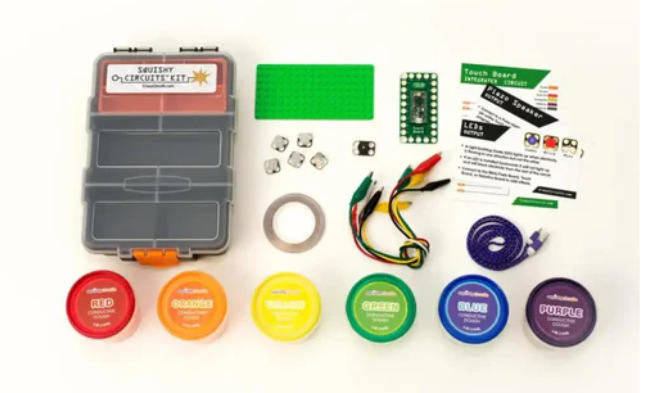 • Crazy Circuits (including Squishy Circuits) teach topics such as circuits, programming, logic, design, sewing techniques, art and design. Users can transform the included Squishy Circuits fabric into interactive programming creations using the included invention board. You can write your own programs or use one of the many online guides or tutorials. You can create your own fabrics, light and sound systems, or even game controllers! Crazy Circuit parts are compatible with LEGO and similar building systems.