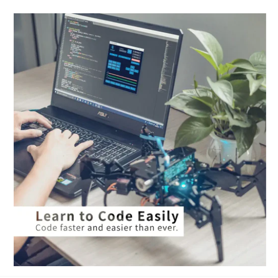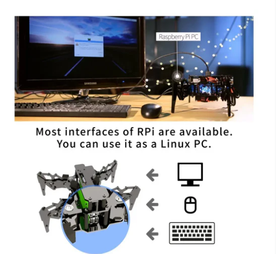 • Adeept DarkPaw Quadruped Spider Robot Kit for Raspberry Pi is a Raspberry Pi-based quadruped bionic spider robot designed for beginners and professionals to learn artificial intelligence, robotics, programming and electronics. An illustrated PDF manual teaches you to assemble the Raspberry Pi robot step by step; easy-to-understand Python code is provided, as well as a beautiful and practical GUI program (compatible with Windows and Linux operating systems)