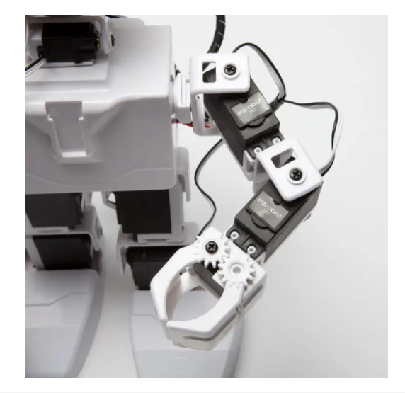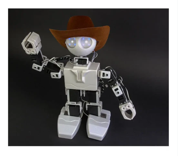 • EZ-Robot JD Humanoid is a fully functional humanoid robot built using EZ-Bit. This humanoid robot has 16 degrees of freedom and is equipped with 16 strong metal gear servos. The head of the robot has a built-in camera that enables visual tracking modes such as color, motion, fonts, QR codes, faces, etc. The eyes of the robot have 18 LEDs (9 for each eye). Each LED can be configured to produce up to 1 million color combinations. The small clamp is driven by a powerful metal gear servo motor. JD has released an app that lets the robot walk right away. It includes a high-performance digital servo motor with a capacity of 15 kg/cm2. The metal gears and ball bearings inside can withstand high loads.