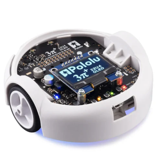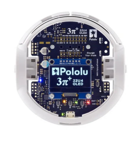 The 3pi+32U4 OLED is a multifunctional, high-performance, user programmable robot with a diameter of only 9.7 centimeters (3.8 inches). Its core is Microchip's (formerly Atmel) ATmega32U4 AVR microcontroller. Like our A-Star 32U4 programmable controller, the 3pi+32U4 has a USB interface and comes pre installed with an Arduino compatible boot loader, so you only need a USB A-to-Micro-B cable (not included) to program it.