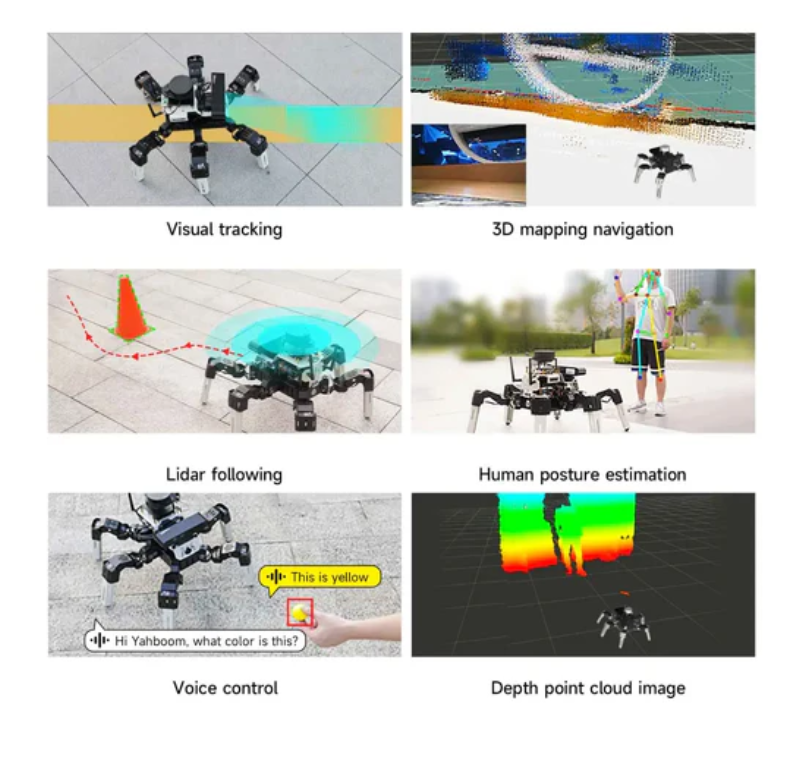 • Includes high-quality accessories such as 18PCS 35KG metal bus servos, depth cameras, LiDAR, voice interaction modules, and large capacity batteries.