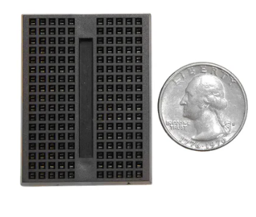 • The ServoCity 170-Point Mini Breadboard is a must-have for small electronics projects and accommodates up to two 14-pin or 16-pin DIP ICs. It features a self-adhesive backing for secure placement and is made of durable ABS plastic. Completely reusable and designed for easy component placement, the breadboard features phosphor bronze nickel-plated spring clips and accepts wire sizes from 20 to 29 AWG.