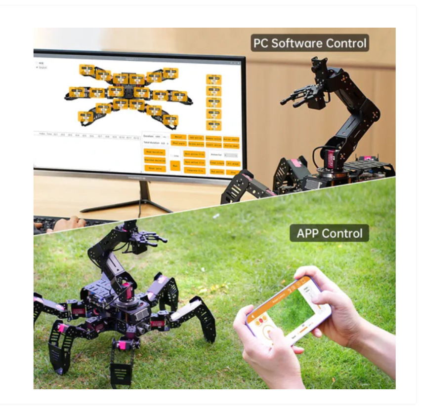 The SpiderPi Pro is equipped with a Raspberry Pi 4B/5 controller, which can adjust the body posture. At the same time, we provide rich course materials for you to quickly experience motion control, machine vision, and OpenCV projects.