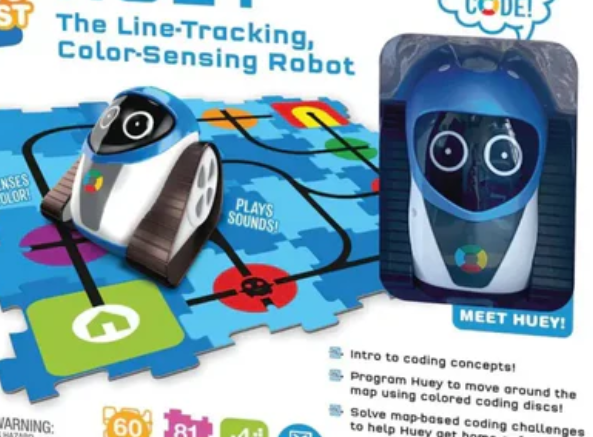 Thames & Kosmos Huey: This color sensitive robot with trackable lines allows children to experience the world of robots and coding without the need for a screen. Huey is equipped with a built-in color sensor that allows navigation on maps created using 81 puzzle shaped blocks.