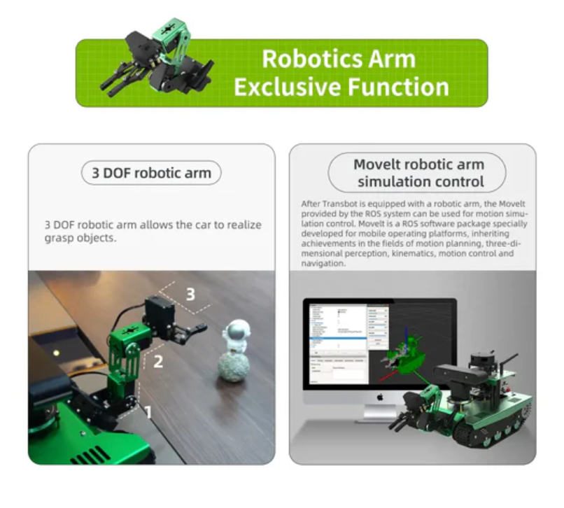 Yahboom Transbot ROS AI robot for Jetson NANO 4GB with depth camera, radar, robotic arm and 7" touch screen (without Jetson NANO SUB board)