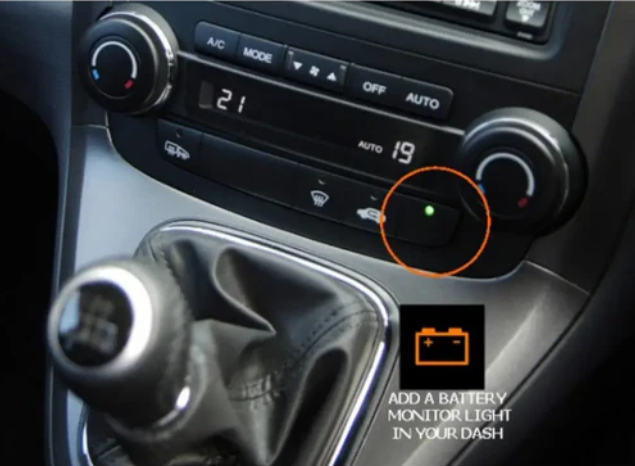 • Only two wires are needed to connect. (Connect after ignition)Uses multi-color 3mm LED. When the light is green, it means there is no problem with the battery. When the light is red, it means the battery voltage is low.