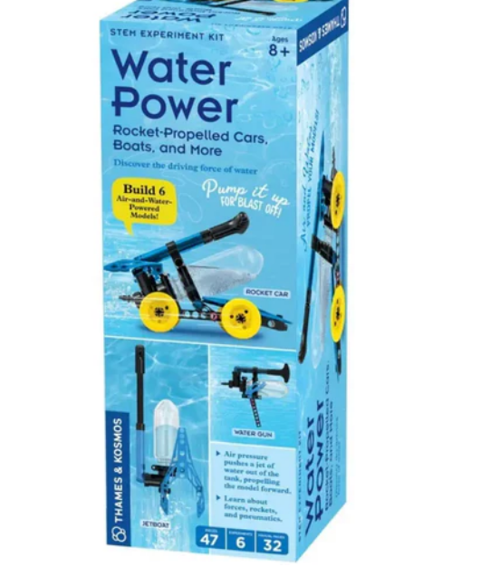 泰晤士河和宇宙水力发电:火箭推进的汽车和轮船提供空气和水的动力来驱动物体移动。建造水火箭车、喷气推进船、水枪,甚至草坪洒水器。