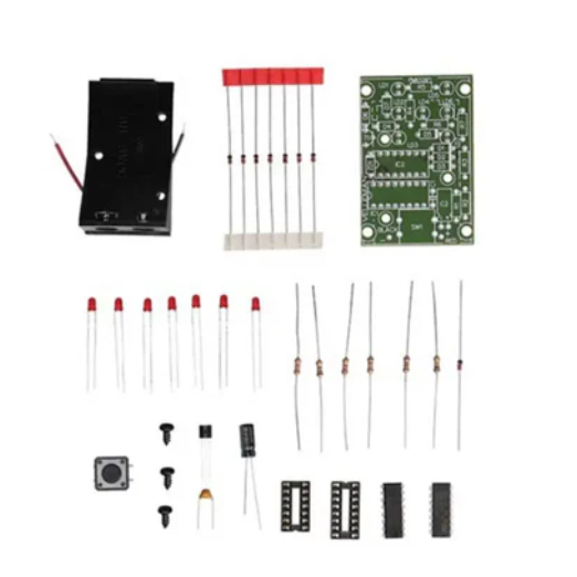 • The Electronic Dice Soldering Kit provides seven LEDs. The kit comes with an electronic dice with LED indicators. After releasing the button, it will slowly roll until it stops.