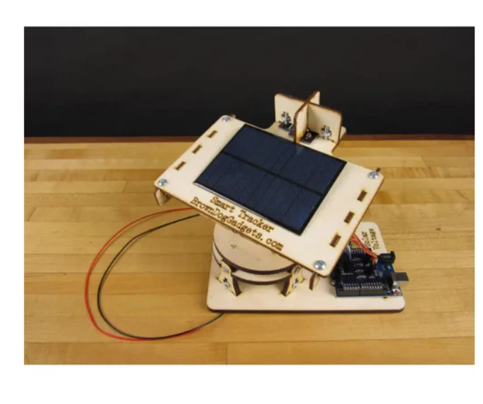 •  Dual Axis Solar Tracker includes everything you need to complete the project, from wooden parts and screws to customized Arduino expansion boards and micro servers. The whole project takes about an hour to build. You need a computer to upload code and a screwdriver to build a tracker.