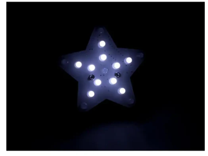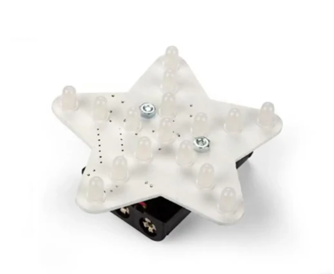 • The White Starlight Soldering Kit provides fourteen different effects: soft light, strong light, strong inside and soft outside, strong outside and soft inside, slow fade, fast fade, slow fill, fill from inside to outside, fill from outside to inside, flashing LED #1, counterclockwise rotation, clockwise rotation, spiral in and out, flashing LED #2.