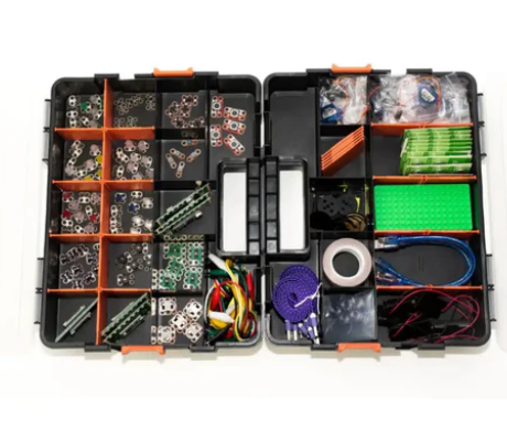• Create projects big and small with over 180 included parts. Use the Invention and Robotics Boards to follow one of our programming guides, or create your own code from scratch.