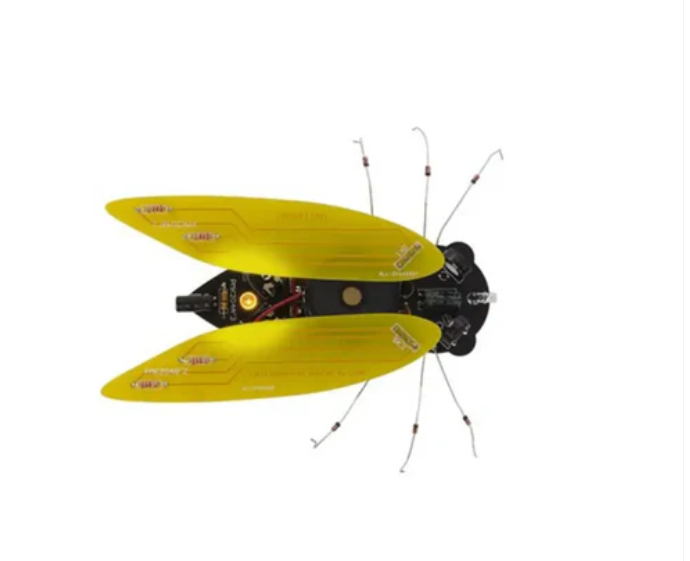 The electronic cicada soldering kit consists of three PCBs, which can mimic the shape of this popular insect as much as possible. The body is matte black, with two bright yellow wings and golden tracks. To complete the design, you can use the accompanying components to add legs to the cicada. In this way, it will have a realistic appearance.