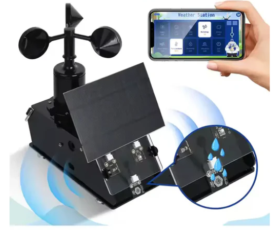 • The weather station is made of premium materials, including a reinforced housing, precision sensors, and rugged MG90 metal servos, which increase its durability and reliability. The kit also offers the convenience of app control, enabling users to remotely monitor and manage the weather station through an intuitive mobile app that provides real-time weather updates and customization options.