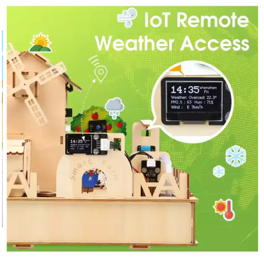 • Made of environmentally friendly plywood, the kit includes easy-to-use 3D cutting templates to inspire creativity and hands-on skills. It is suitable for children aged 8 and above and is an ideal gift for various occasions such as Christmas and birthdays. The smart farm kit is based on ESP32 IoT technology, simulating smarter modern agricultural production management, allowing children to master relevant programming knowledge.