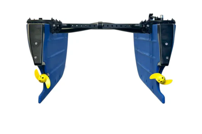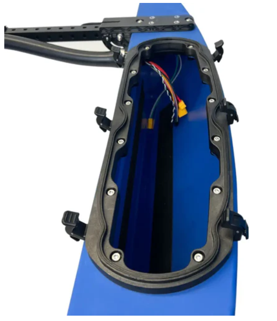 • The BlueBoat is designed to carry any payload you want to integrate, and it will outperform any other vessel of its size. Control electronics, batteries and wiring are contained within the hull, and the space between the hulls is completely dedicated to payload integration. The hull is designed with flat inner walls to create an optimal low wake sensor area for surveying sonars. BlueBoat can carry up to 15 kg of batteries and payload. Transom brackets provide mounting points on the bottom of the hull for anything: a hydrographic echosounder, a case full of prototype electronics, or both.
