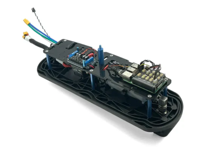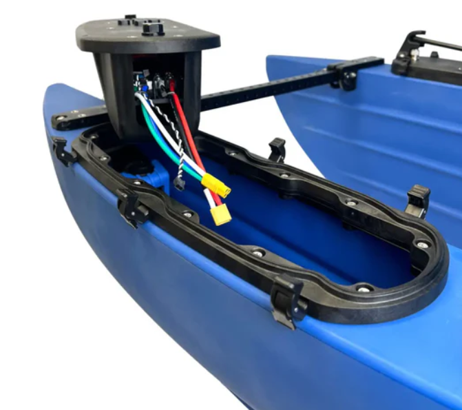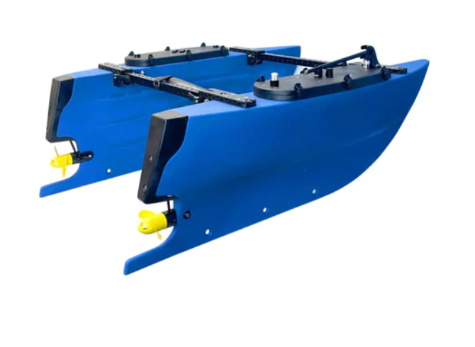 • The BlueRobotics BlueBoat Unmanned Surface Vessel is an affordable surface vessel designed for hydrographic surveys, robotic system development and scientific missions. With a weed-free hull/propeller, rugged construction and compact size, it is designed to be reliable and easy to use. Its flexible electronics architecture, ample payload mounting area and open source BlueOS software system make it an ideal platform for sonar and other sensor integration.