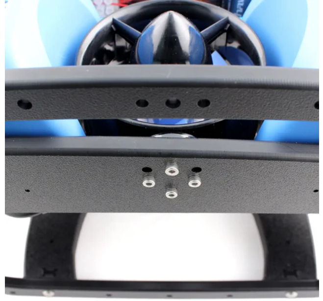 • BlueROV2’s modular frame design allows for easy installation of accessories such as grippers and scanning sonars. Payload rails allow the frame to be extended to mount larger payloads or accommodate scientific instruments, additional battery housings, and more. Users can modify the standard frame to create a custom underwater robot for specific applications.