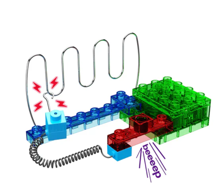 This kit offers hours of fun and educational games. The brightly colored building blocks contain electronic components such as battery modules, alarms, and wire mazes. Building 3D circuits can teach STEM. Try to thread the hook through the wire maze without touching it and let the alarm sound, and see how stable your hands are.