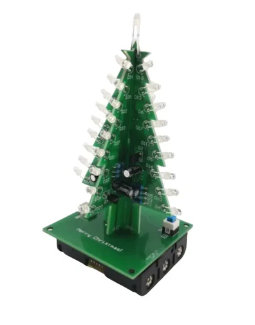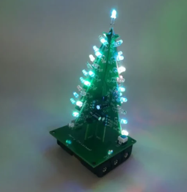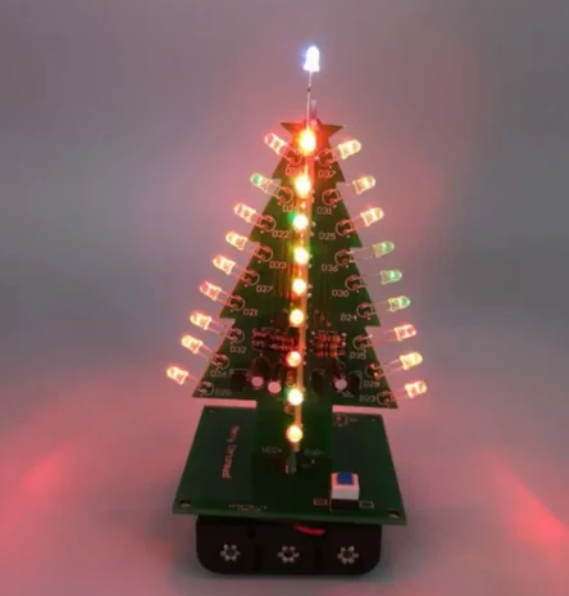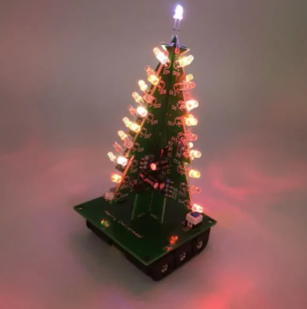 • Dagu 3D Christmas Tree DIY Electronic LED Kit Red/Green/Yellow with Flashing Circuit is a DIY assembly kit that allows you to create a 3D Christmas tree with flashing LED lights. The kit consists of three circuit boards that form a beautiful and charming 3D Christmas tree after assembly. It looks especially good in dark places.