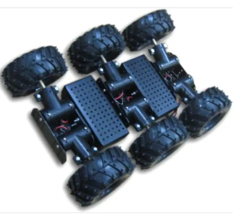 The Dagu "Wild Thumper" 6WD all terrain chassis (aluminum, 75:1) is made of 2mm thick anodized aluminum plate and comes with stainless steel and nickel plated brass fittings. It is equipped with 6 powerful steel gear motors, studded tractor tires, and a "super twist" suspension system that allows all wheels to land on the ground. This chassis allows your robot to go almost anywhere. The research on outdoor search and rescue robots is not only an important topic for universities, but also leads the development direction of military applications. Each unit is pre assembled in a color printing box. Simply use the provided hex wrench to install the wheels. Attached is a simple printed manual.