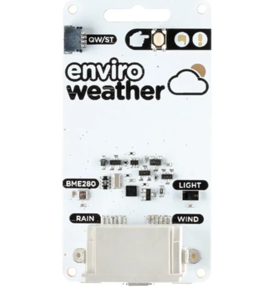 • The Enviro Weather Pico Board - Weather Monitoring Device is a wireless climate and environmental monitoring system that allows you to easily connect weather sensors. It is equipped with sensors that can measure temperature, humidity, pressure and brightness.