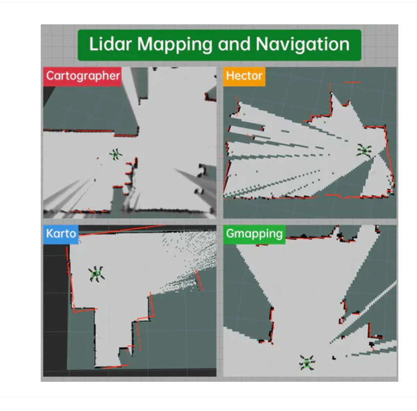 • JetHexa is equipped with high-performance EAI G4 LiDAR, which supports the use of various algorithms such as Cartographer, Hector, Karto, and Gmapping for mapping, path planning, fixed-point navigation, and navigation obstacle avoidance.