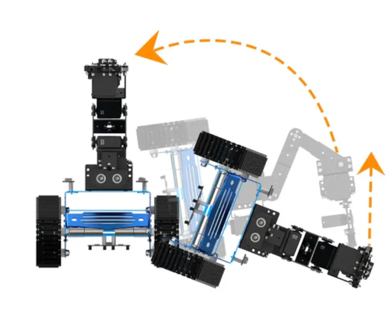 The Hiwonder Tankbot tracked robot vehicle (with a robotic arm for STM32 programming) is an intelligent handling robot driven by an STM32 microcontroller. It is equipped with a robotic arm with six degrees of freedom and uses intelligent serial bus servo. Tankbot can be controlled through the use of applications, controllers, or motion sensing gloves.