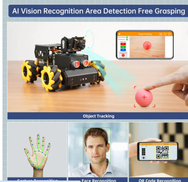 TurboPi uses OpenCV as an image processing library to recognize target objects and complete AI games such as face tracking, color tracking, QR code recognition, gesture recognition, object recognition, and line tracking.