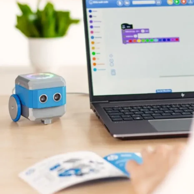 Otto offers three different programming modes: controller applications for controlling actions, gestures, and sounds; Scratch based block programming and fast Python generator; And advanced programming using Python or C++. The robot has programmable RGB LEDs, line tracking sensors, and ultrasonic sensors, and has the opportunity to be further enhanced through additional extensions and 3D printing.