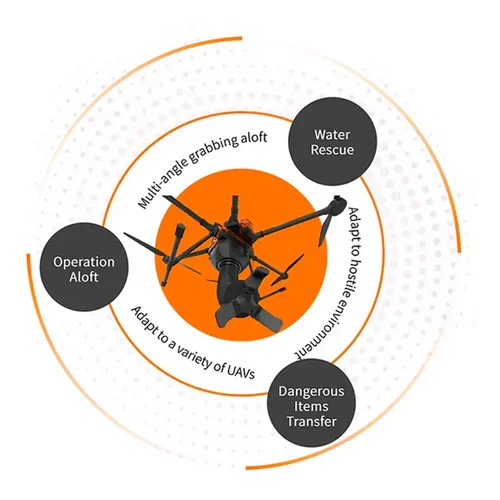 • IT-enabled drones (equipped with MKN-800 flexible robotic arms) Equipped with a flexible robotic arm MKN-800 Maximum speed: 15 m/s Maximum load: 10kg Number of motors: 6 (hexacopter) Equip the drone with a flexible robotic arm to grab and detect multiple angles The end effectors are interchangeable Make IT Happen drone (equipped with MKN-800 flexible robotic arm) Equipped with MKN-800 flexible robotic arm. The end-effectors are interchangeable with easy-to-use take-off and landing, multi-angle detection and multi-angle gripping. The flexible robotic arm utilizes innovative technology to replace traditional motors and reducers with soft, muscle-like materials as robot actuators, achieving unmatched lightness, flexibility, and interactive safety. apply Object Detection & Transportation Hang the safety rope from a height Spraying at height (anti-rust, anti-freeze) Exposure testing and inspection Sampling in extreme environments Air rescue
