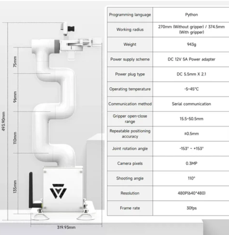 Equipped with a 0.3MP USB camera and a viewing angle of 110 °, JetCobot combines OpenCV image processing, machine vision, and deep learning algorithms to achieve color interaction, face tracking, tag recognition, model training, gesture interaction, and other functions.