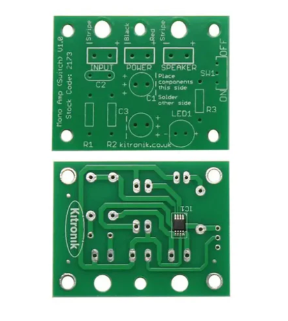 • Kitronik Mono Amplifier Kit with Power Switch and Status LED