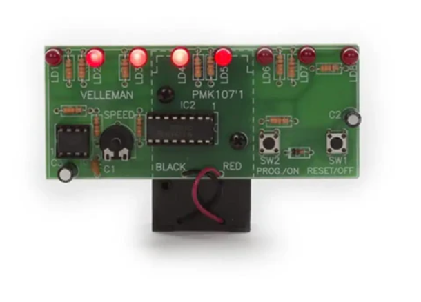 • The LED Running Light Welding Kit includes 8 LEDs. You can adjust the LED running effect by pressing the PROG button. There is a SPEED potentiometer to adjust the running effect speed and a power standby button (OFF button).