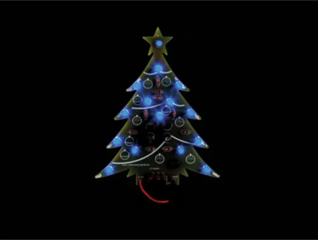 • The Blue LED Christmas Tree Soldering Kit contains 15 bright blue 3mm LEDs. A switch is included. It features ultra-low power design and is powered by a 9V battery.