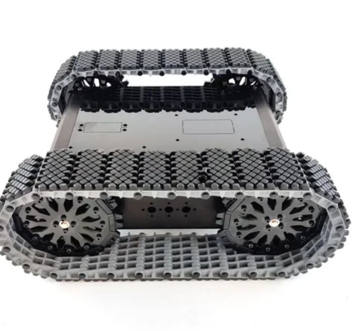 The Lynxmotion aluminum 4WD1 MTS robot kit is a sturdy, modifiable, and expandable chassis that can be used for RC or autonomous robot experiments. By utilizing our MTS (Modular Track System), the robot has excellent traction. Using our small nickel hydrogen battery pack and Sabertooth 2x10 R/C motor controller means there is enough space inside to accommodate other electronic devices. However, if the internal space is insufficient, we can add an additional deck at the top for future expansion. The decks can be stacked together, so you can add any number of decks according to project needs. If you have any ideas about the deck you want to see, please send us an email! This robot can carry a payload of up to 5 pounds. We have optional accessories such as Pan&Tilt or Gripper, and many more are currently under development.