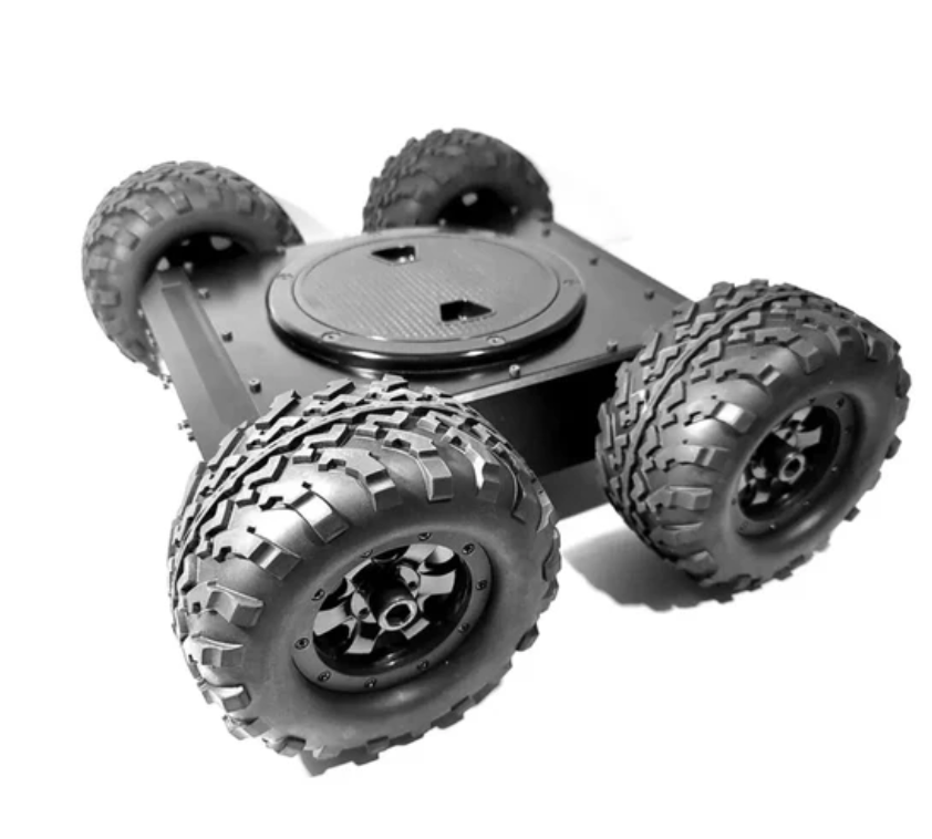 This rover includes four off-road wheels with a diameter of 160 millimeters and all electronic devices required to control the robot using the accompanying handheld wireless remote control. Anti slip wheels provide shock absorption function, making them an ideal choice for robots when driving on flat or uneven terrain. These wheels provide a considerable ground clearance of 41 millimeters.