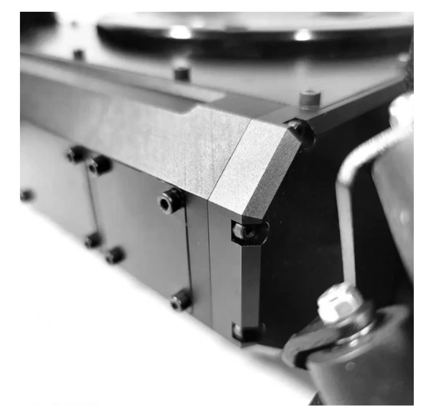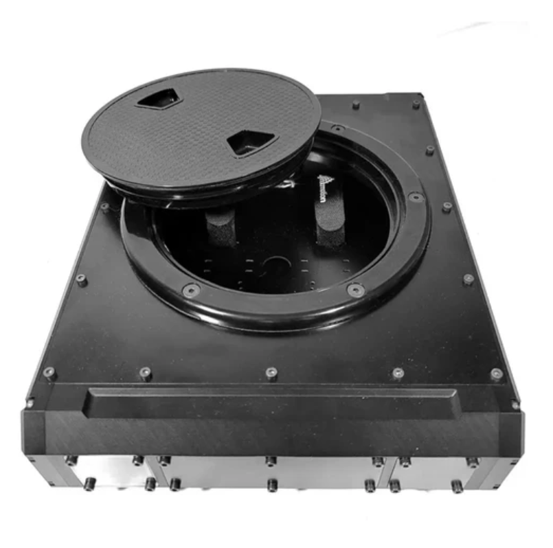 The machined aluminum frame integrates seals around each motor shaft, and there are solid rubber wires between the frame and all panel openings, making it dustproof and waterproof. There is a large ship inspection hatch on the roof for easy maintenance of internal parts and quick replacement or charging of batteries. Except for the internal electronic mounting board, the platform is symmetrical and can be inverted.