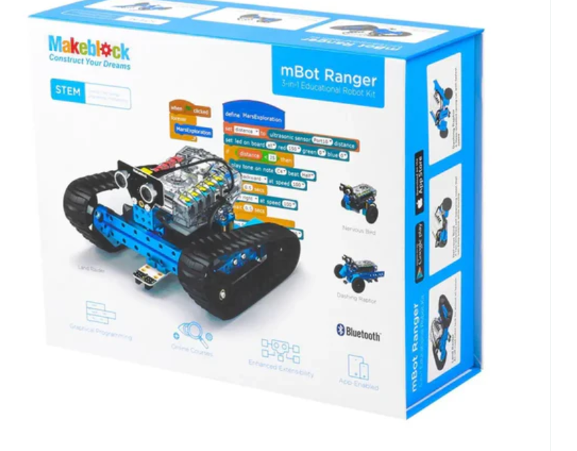 MakeBlock mBot Ranger 三合一可变形 STEM 教育机器人套件是一款三合一 STEM 教育机器人套件,支持 3 种构建形式:机器人坦克、三轮赛车和自平衡车。通过 iPad、平板电脑或笔记本电脑对 mBot Ranger 进行编程和控制,开始您的探索。