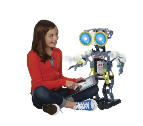 • The Meccanoid G15 Personal Robot is your personal robot friend that you can build using 819 Meccano parts. It is an advanced and easy-to-use open-source robot building platform. The robot speaks thousands of phrases, tells jokes, provides anecdotes, plays games and interacts with you using its onboard "Mecca Brain" and voice recognition. It can even initiate conversations and give you high fives. The Meccanoid G15 features a simple programming option "LIM" (Learning Intelligent Movement) where you can program movements and sounds and play them with the press of a button. So even if you are new to robotics and programming, this mechanical robot has the most innovative and easiest programming features.