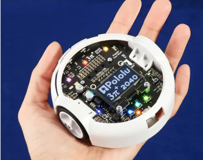 3pi+2040 is a multifunctional, high-performance, user programmable robot with a diameter of only 9.7 centimeters (3.8 inches). It is driven by the Raspberry Pi RP2040 microcontroller, a 32-bit dual core Arm Cortex-M0+processor with a running frequency of 125 MHz that can be programmed using C++, Arduino, or Python. 3pi+2040 is equipped with 16 MB (128 Mbit) flash memory and comes pre installed with a MicroPython interpreter. For those who wish to customize or enhance robots with additional peripheral devices, the robot's power rail, power system controls, and microcontroller I/O lines can be accessed through several 0.1 inch pitch expansion ports