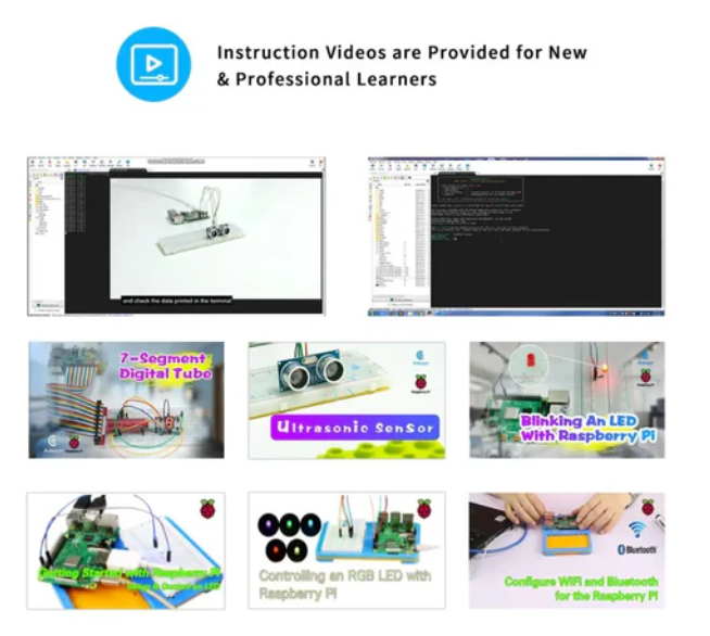 • Provides two programming languages, Python code and C code, for beginners to learn programming. This starter kit contains 40 lessons with diverse features designed to provide a dynamic creative experience. Each project comes with schematics, test code, and detailed instructions.