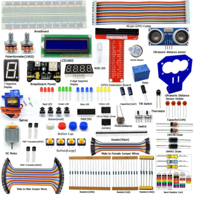 • The Adeept Ultrasonic Distance Sensor Raspberry Pi Starter Kit is a set of over 150 Raspberry Pi components and electronic modules. The parts can be divided into about 25 types.