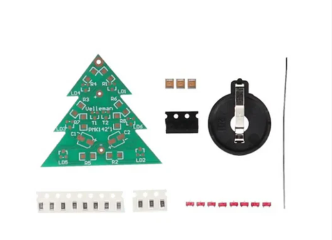 • The SMD X-MAS Tree Soldering Kit provides 6 LEDs that flash alternately. The kit is an ideal introduction to SMD (Surface Mount Device) technology. The power consumption of the Tree Soldering Kit is approximately 5 mA. The power source is a 3 V lithium button cell.