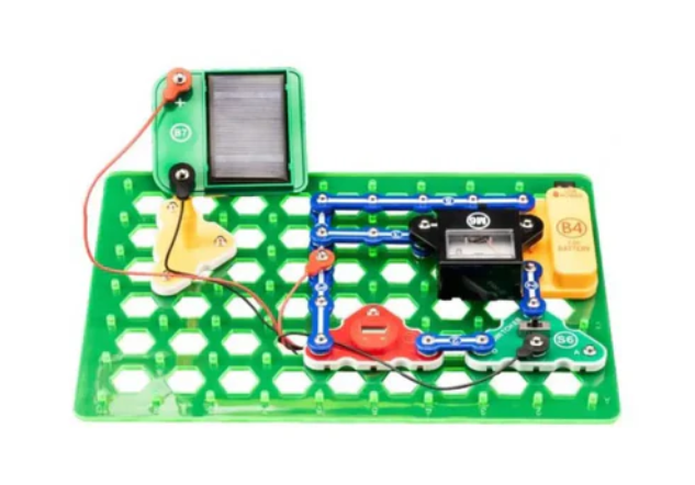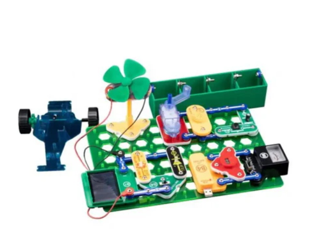 • Built by Snap Circuit, the Elenco Alternative Energy Kit is a versatile, experiment-ready kit that makes it easy to complete real-world electronics projects. The kit offers many of the latest technologies in the field of alternative energy. The kit helps you develop over 125 projects related to innovative toys and educational devices. The flexibility of award-winning Snap Circuits® provides an innovative approach to green energy learning, development, and how we can harness the electricity generated in our homes. The kit comes with a crank generator, solar panel, and wind turbine, allowing kids to light up LEDs, power a clock, charge batteries, power a small radio, and track the electricity generated on an analog meter. The kit can be integrated with other Snap Circuit kits to create innovative toys and electronic devices.
