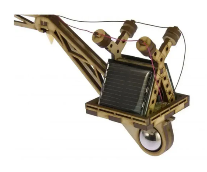 The Solarbotics Paris Flyer CarouSol Soldering Kit combines the golden age of airships with transoceanic steam-powered travel. It borrows design elements from the golden age of air travel. The laser-cut MDF boards are easily bonded together to create a truly mobile solar-powered vehicle.