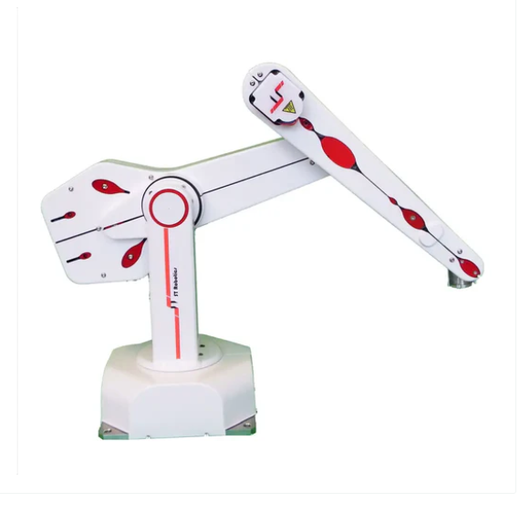 The ST Robotics R12 5-axis articulated robot arm is a complete, self-contained, five-joint vertical robot arm system designed as a cost-effective solution for benchtop automation. It has a reach of 500mm and a payload of 500g. The gripper end has a mounting plate for a low-cost gripper, vacuum picker, or your own equipment.
