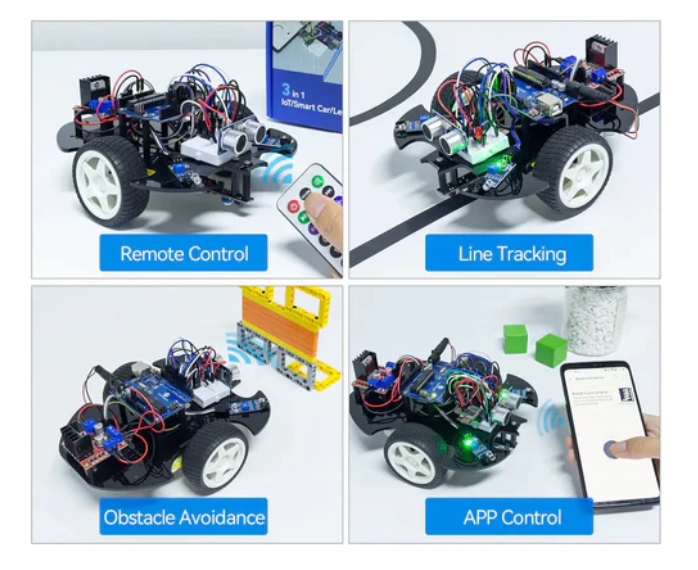 • The SunFounder 3-in-1 Starter Kit is compatible with Arduino IDE and Scratch, making it suitable for beginners and experienced software engineers alike. With this kit, you can learn how to build and program a versatile smart car. It includes functions such as line following, obstacle avoidance, and remote control.