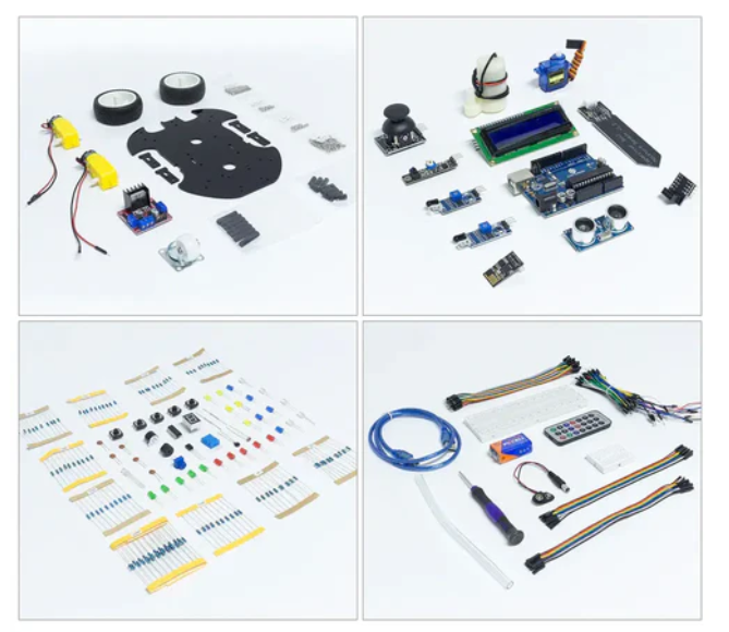 • The SunFounder 3-in-1 Arduino Uno Starter Kit (Intermediate) is the most comprehensive kit for learning about Arduino, smart cars, and IoT. This 3-in-1 kit includes 87 items and 192 projects (including ESP8266 and Arduino UNO compatible controller boards).