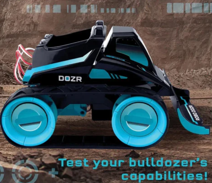 Thames & Kosmos Code+Control: Robo Dozr provides powerful robot bulldozers and stylish handheld wireless controllers. Then use the controller to command your robot to move in all directions, play sound, and light up the cab ceiling light.